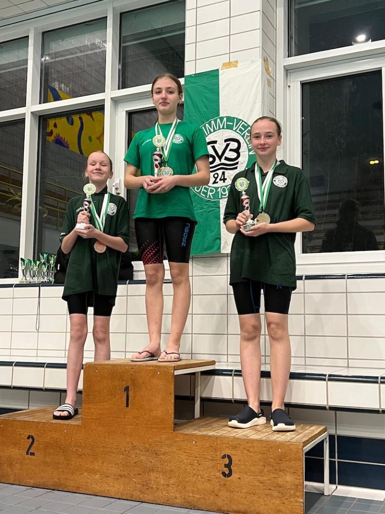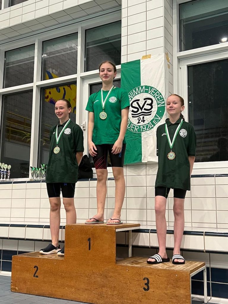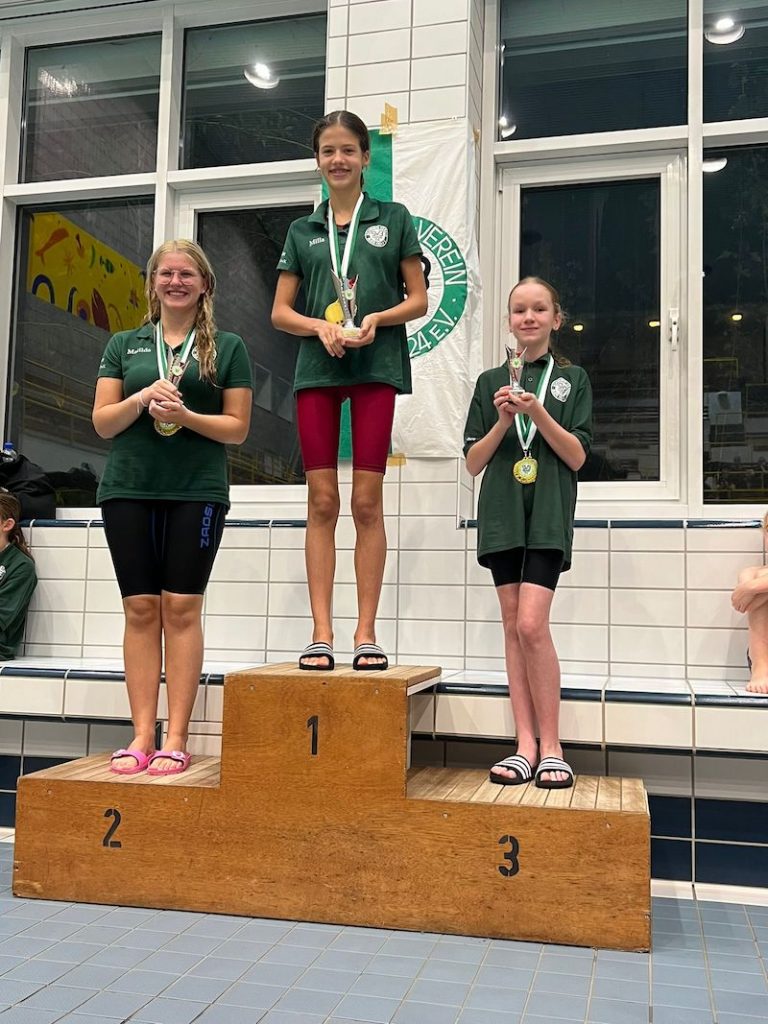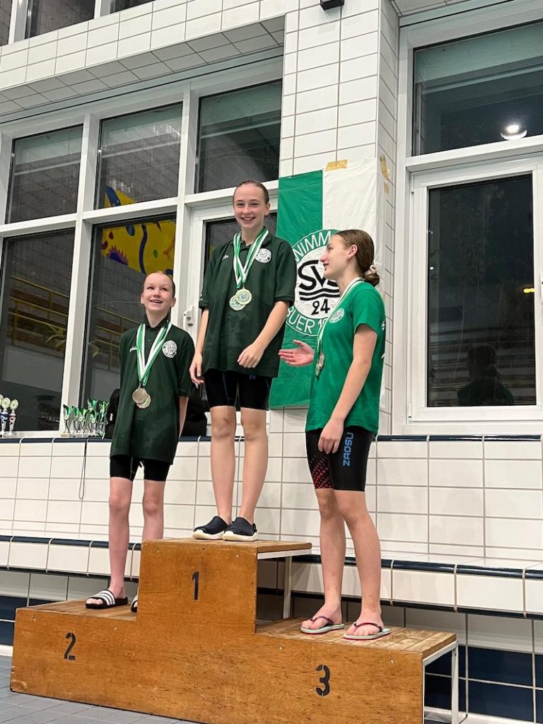 Die 100m Lagen wurden in den Jahrgängen 2012 und jünger gewertet. Bei den Frauen setzten sich Annika Kubiak (1. Platz), Sophie Pustolla (2. Platz) und Finja Schuh (3. Platz) durch und sicherten sich einen Pokal. Bei den männlichen Teilneh- mern gab es bei den 100m Lagen keine Konkurrenz für Oskar Nienhaus, der den ers- ten Platz belegte und ebenfalls mit einem Pokal ausgezeichnet wurde.