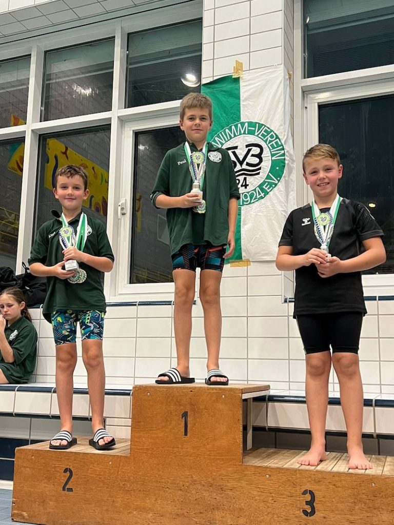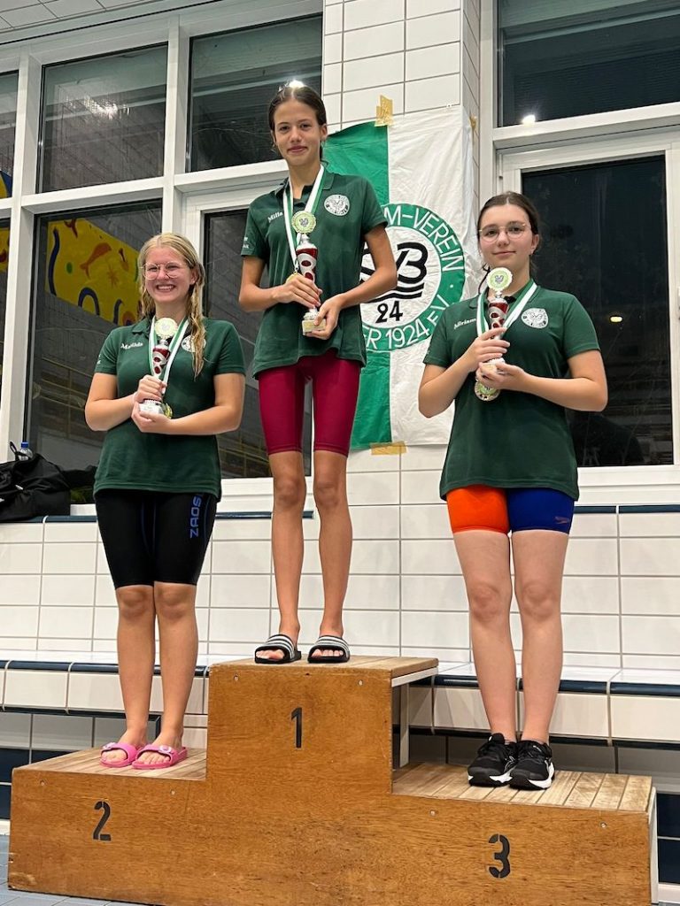 Im Wettkampf um den 200m Lagen-Pokal wurde ebenso hart gekämpft. Die Wertung erfolgte offen, und die besten Platzierungen gingen bei den Damen an Milla Brandt (1. Platz), Matilda Eisenbraun (2. Platz) und Miriam Bolik (3. Platz). Bei den Män- nern konnten sich Konstantin Hollatz (1. Platz), Mert Durdu (2. Platz) und Matteo Schwabe (3. Platz) einen Platz auf dem Treppchen sichern. Alle durften sich über einen Pokal freuen.