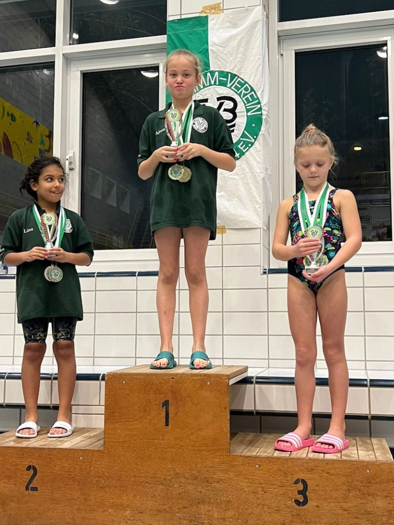Dank zahlreicher Helfer war der Aufbau schnell erledigt, sodass pünktlich mit dem kinderfreundlichen Teil des Programms begonnen werden konnte. Auch in diesem Jahr hatten die Eltern wieder die Möglichkeit, von der Tribüne aus zuzuschauen und ihre Kinder kräftig anzufeuern. Für viele der teilnehmenden Schwimmer und Schwimmerinnen war es der erste Wettkampf – und dank der hervorragenden Vorbereitung durch die Übungsleiter meisterten alle diese Herausforderung mit Bravour. Die jüngsten Teilnehmerinnen waren Ella Wogersien und Ela Inanc, beide Jahrgang 2018.